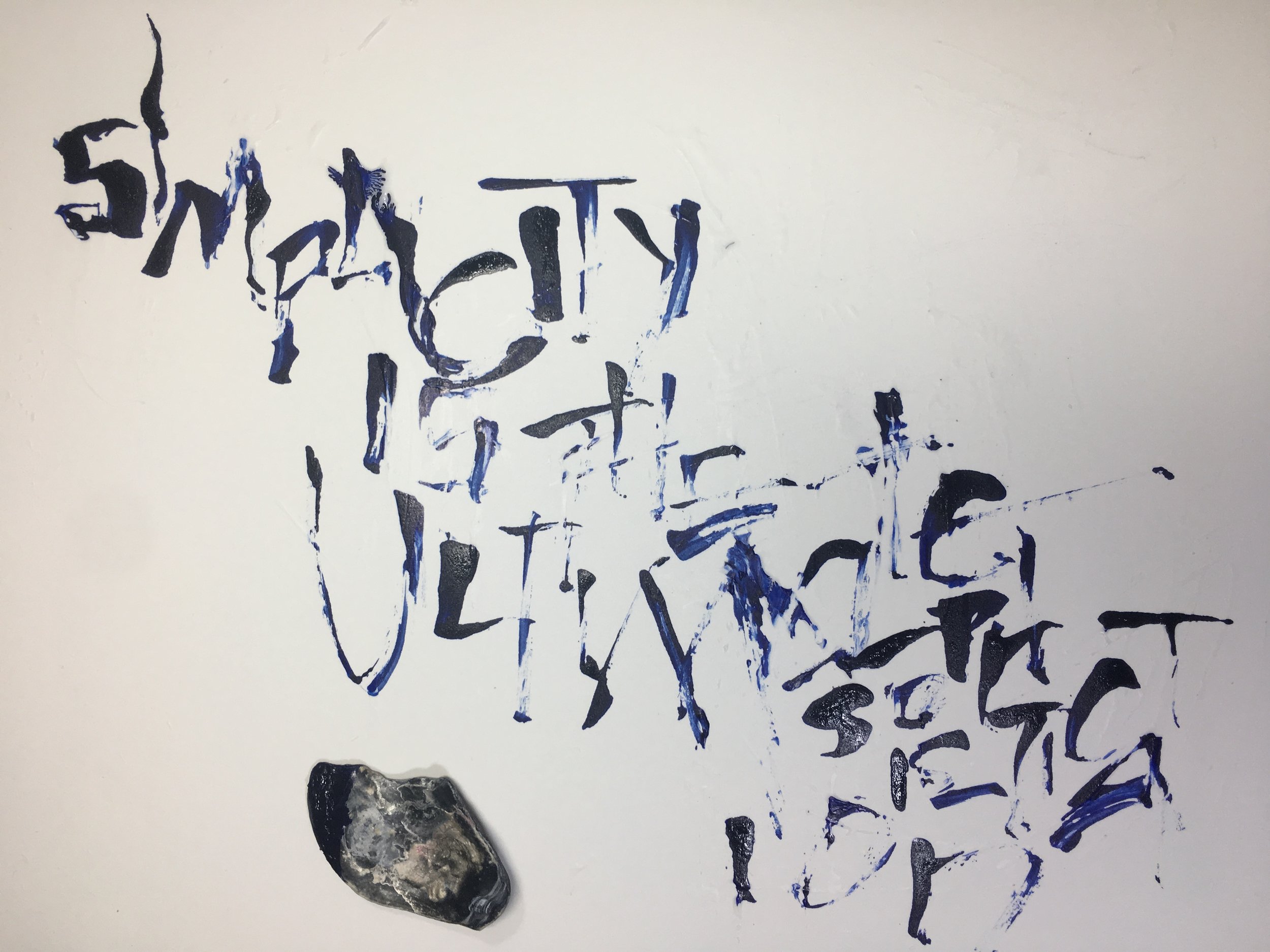 My 2019 intention is efficiency — to do less with more. Although these paintings are far from simple, the tools used are. I developed alphabets with the found objects and wrote the quote multiple times to create the layers.